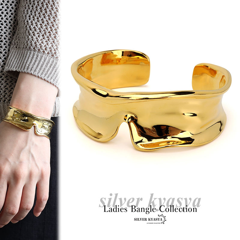 ボーンカフバングル ゴールド 18KGP 太めバングル スリット なめらか 艷やか 大ぶり シンプル