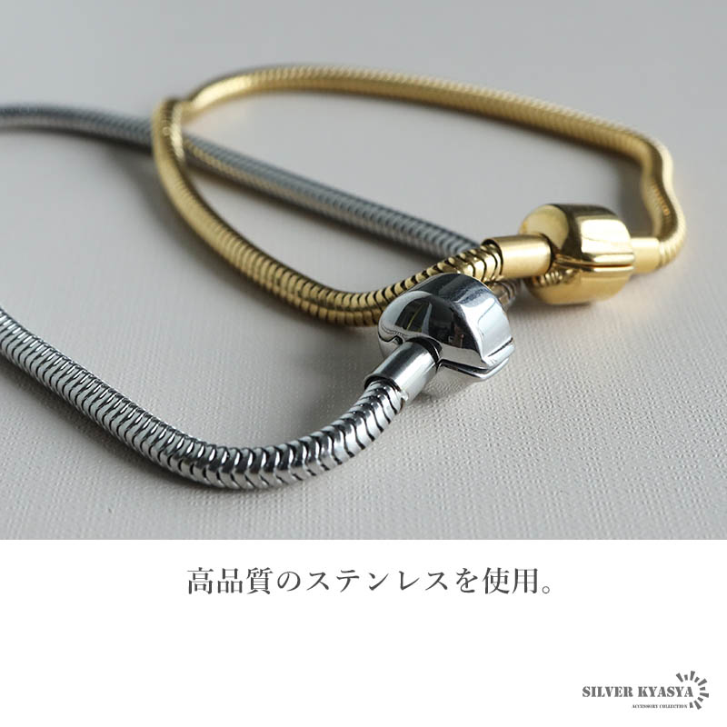 ステンレス 18KGP スネークチェーン ブレスレット チェーンブレスレット ゴールド シルバー はさみ込み 留め具