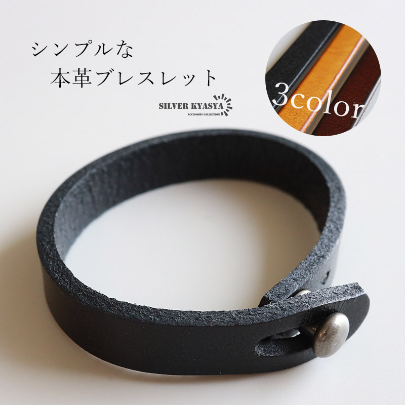 シンプルな本革ブレスレット 3色 2サイズ レザーブレスレット ブラック ブラウン キャメル カジュアル 牛皮 腕輪 バングル アクセサリー 普段使い