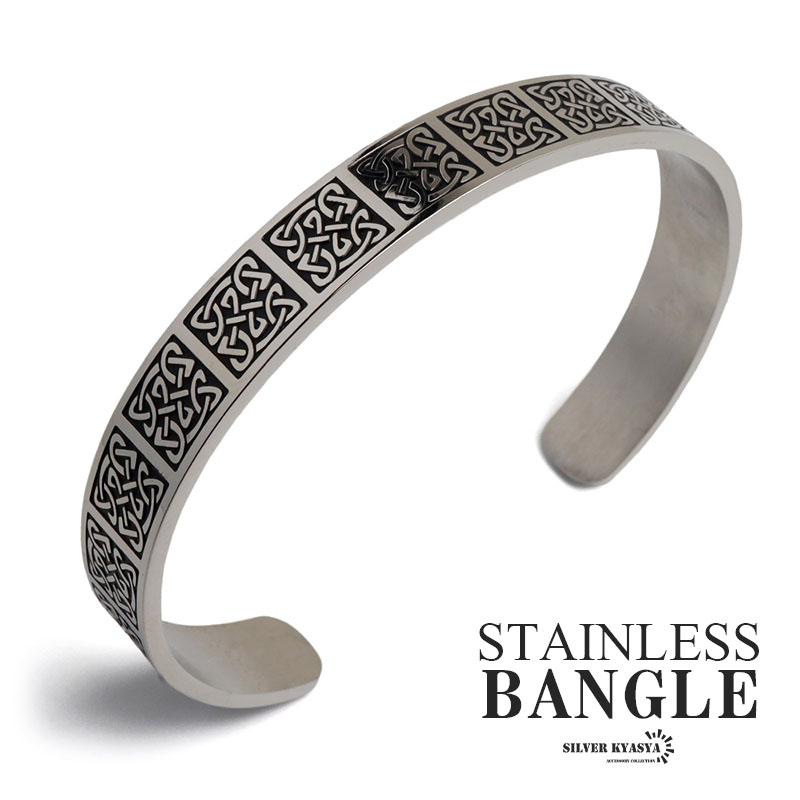 ステンレス ケルト文様 バングル メタルバングル メンズ 平打 ブレスレット 腕輪 シルバー ケルトの結び目 金属アレルギー対応
