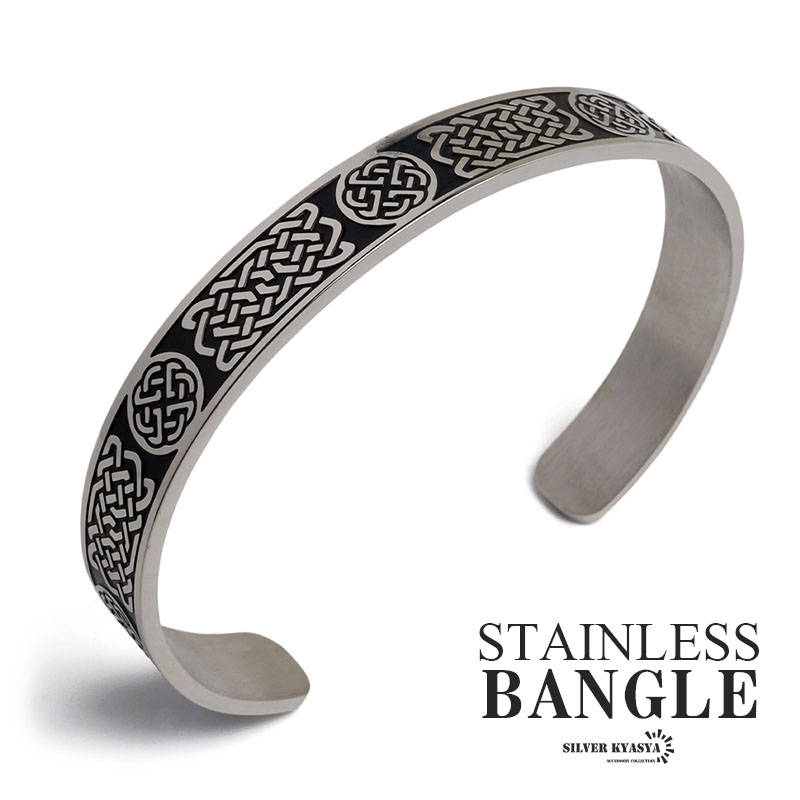 ステンレス ケルト文様バングル ケルトの結び目 メタルバングル メンズ 平打 腕輪 ブレスレット シルバー 金属アレルギー対応