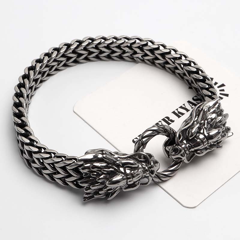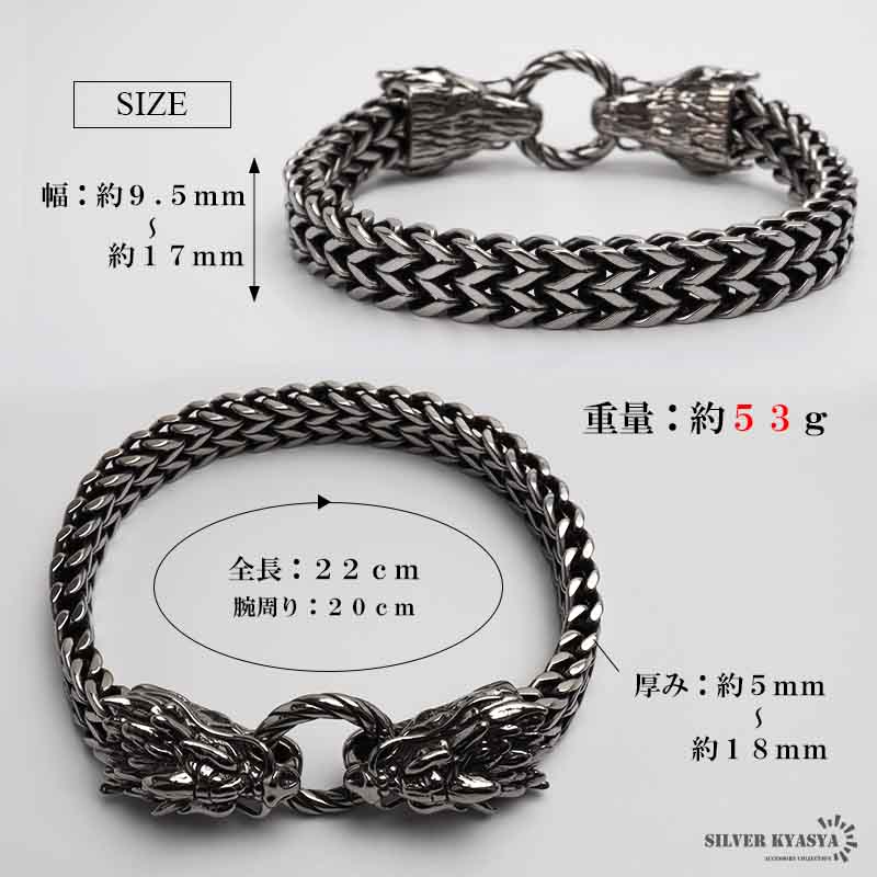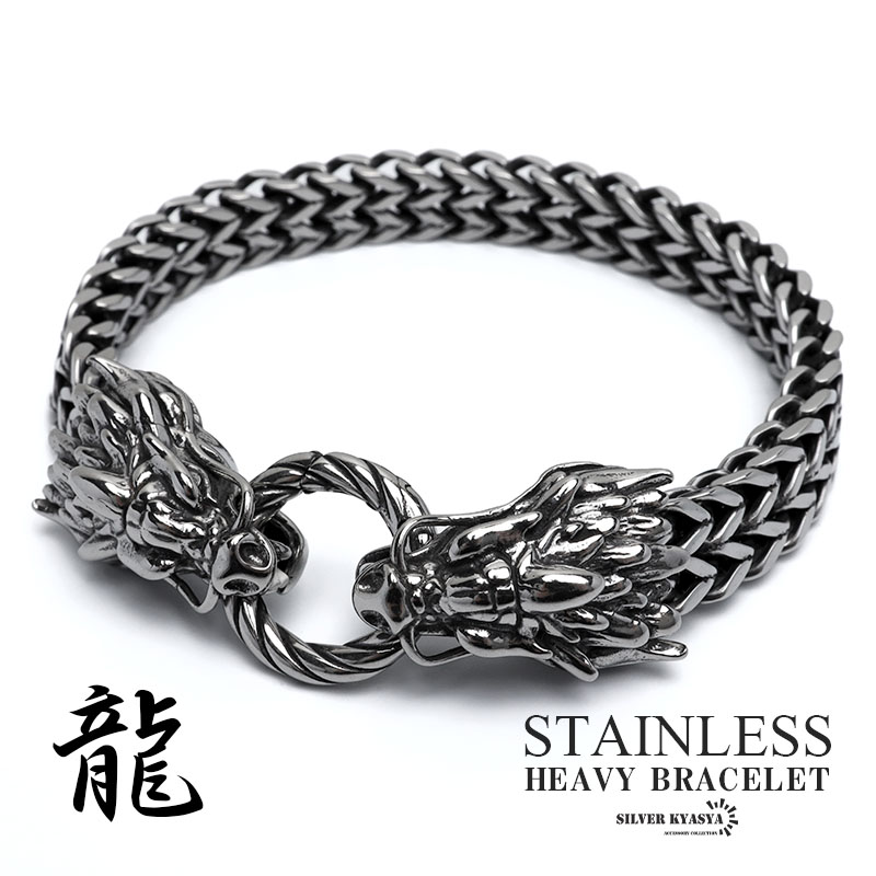 ステンレス ドラゴンブレスレット 龍 シルバー ヘビーブレスレット ごつめ リング式留め具 男性 メンズ 金アレ対応