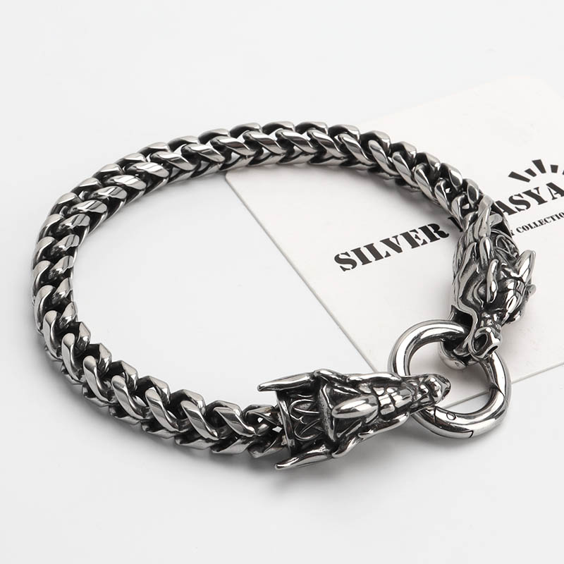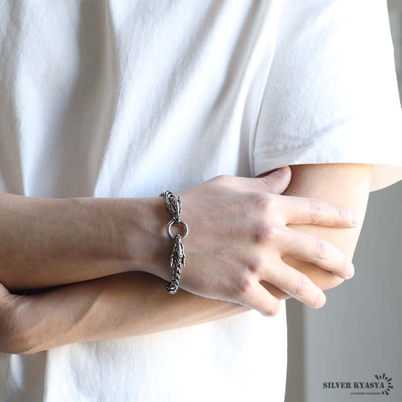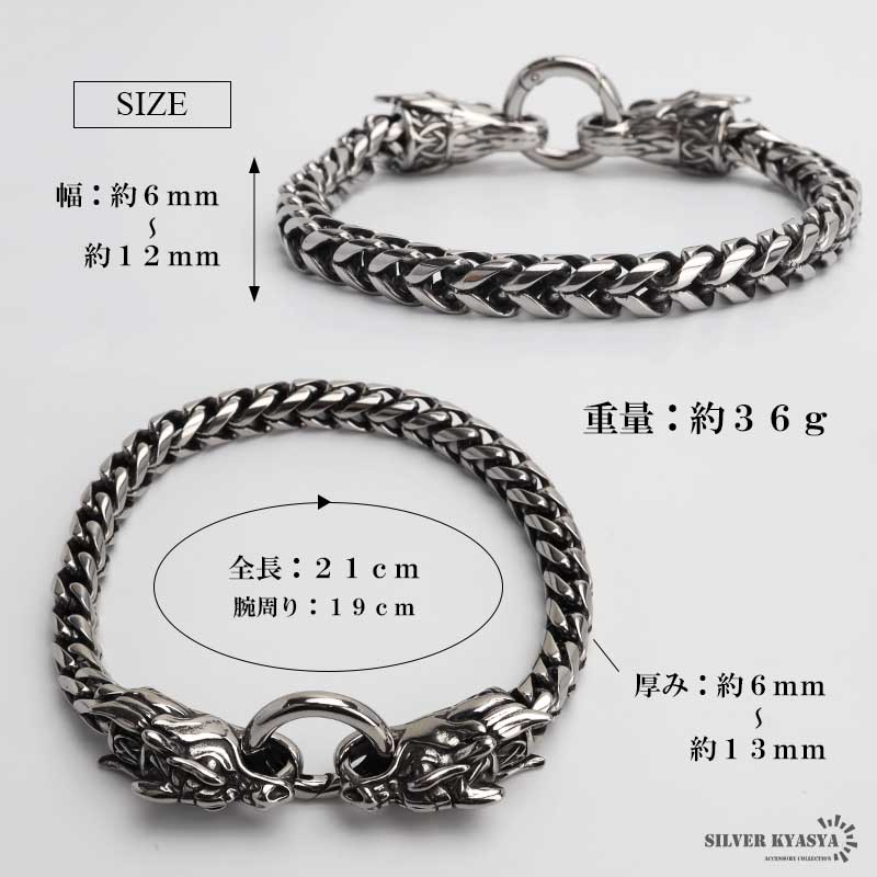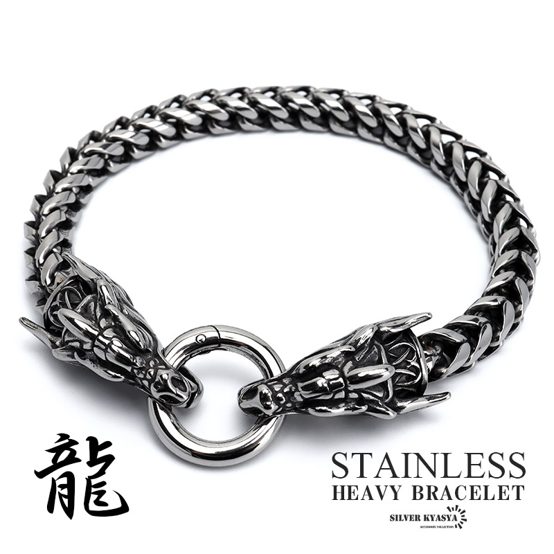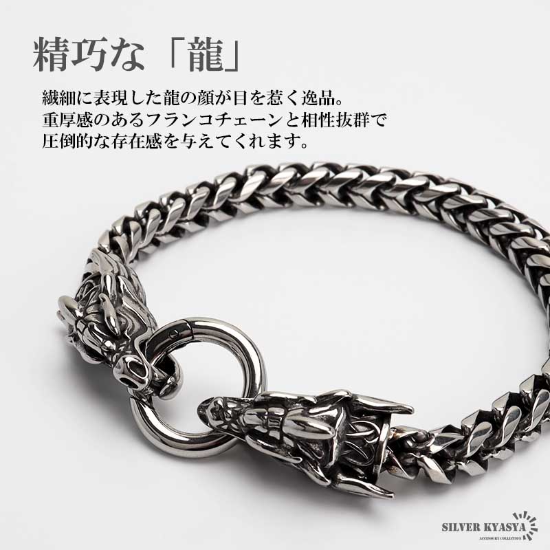 ステンレス ドラゴンブレスレット 龍 シルバー ヘビーブレスレット ごつめ フランコチェーン 男性 メンズ 金アレ対応