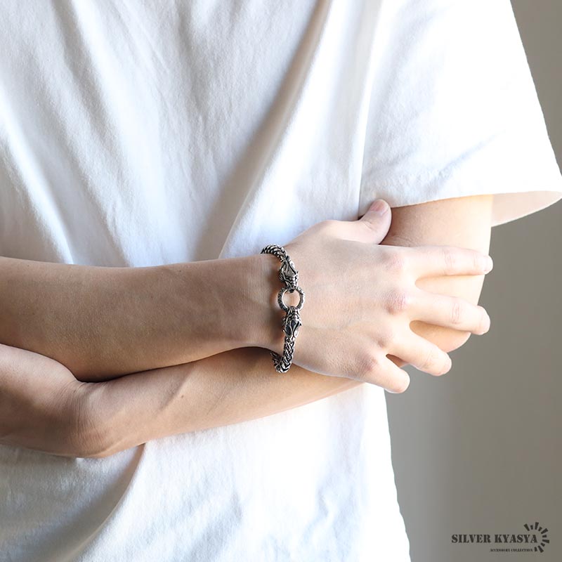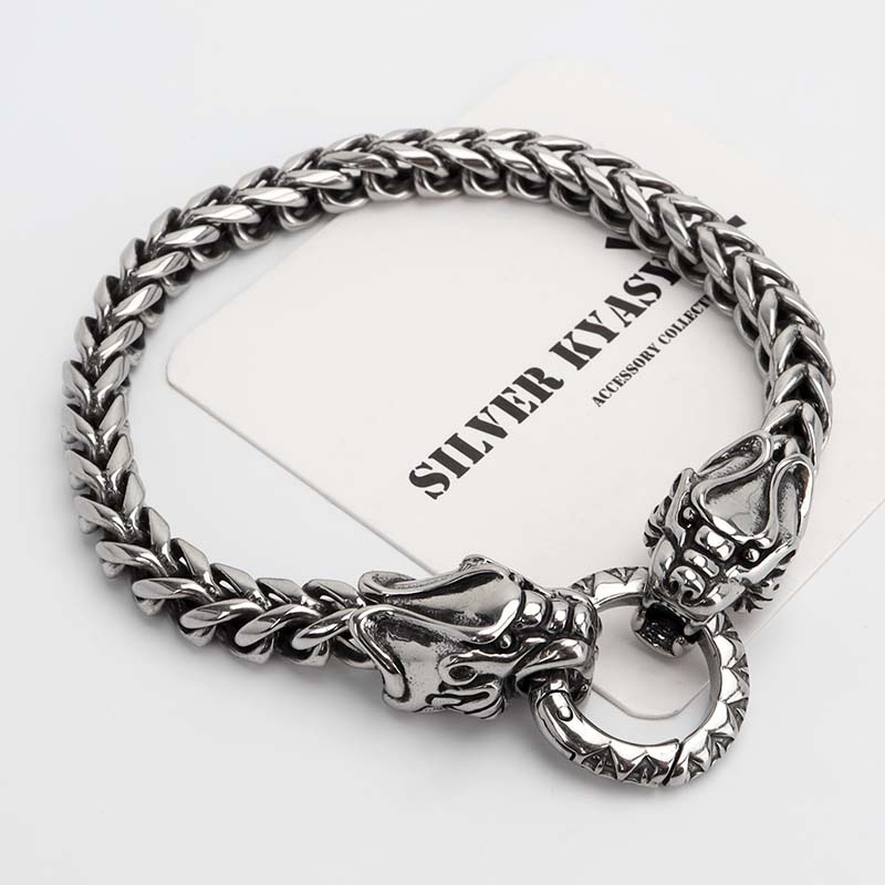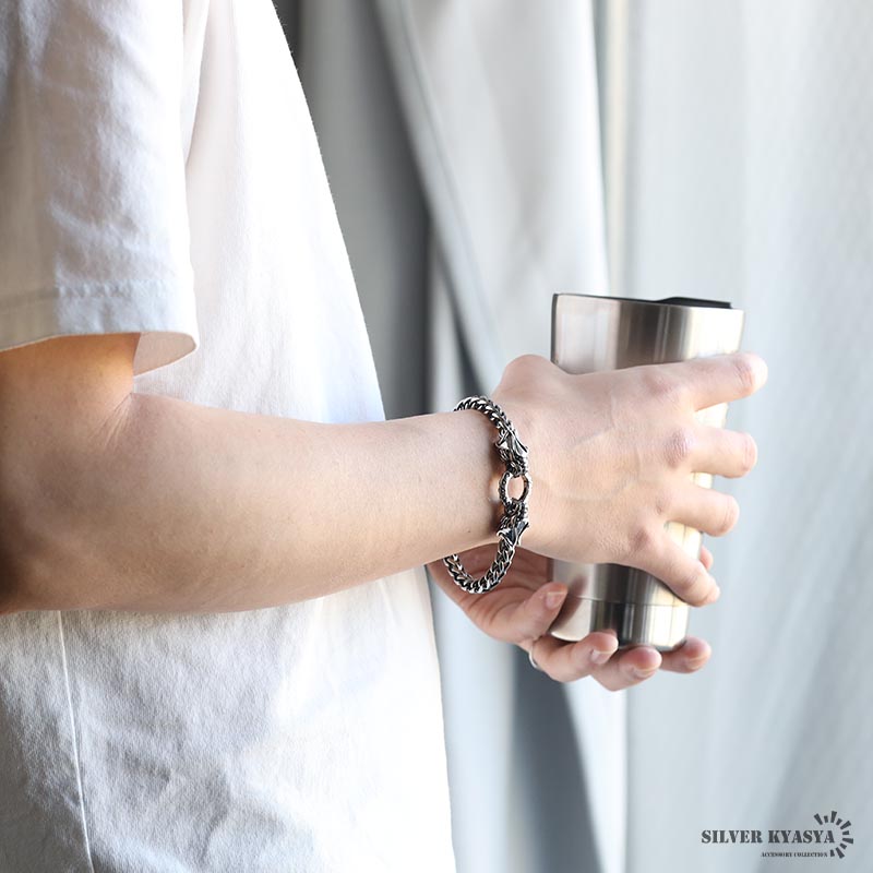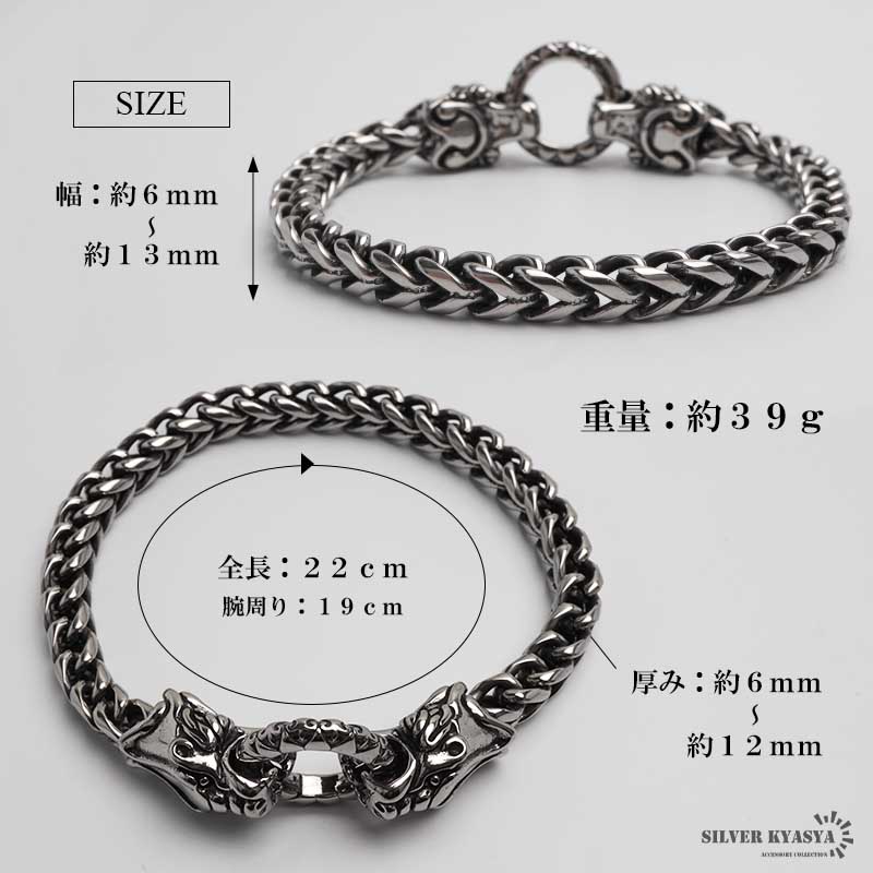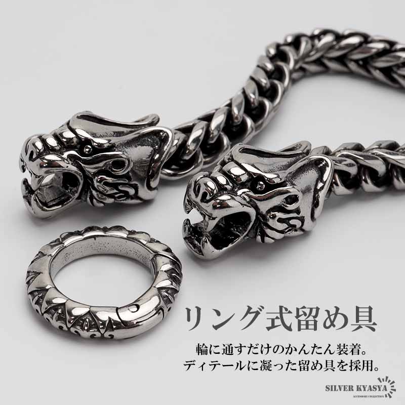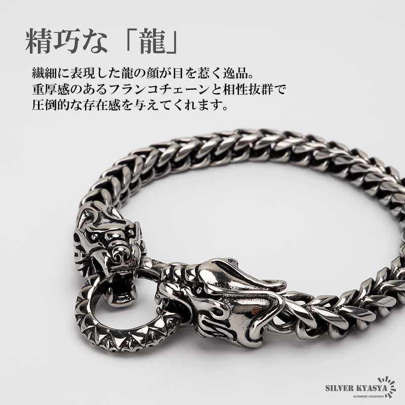 ステンレス ドラゴンブレスレット 龍 シルバー ヘビーブレスレット ごつめ フランコチェーン 男性 メンズ 金アレ対応