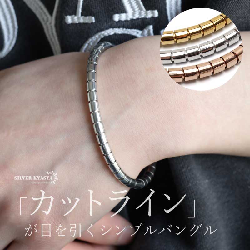 ステンレス カットラインバングル シンプルバングル 18KGP ゴールド シルバー ローズゴールド 切れ目 レディース 女性 ブレスレット 腕輪 金属アレルギー対応