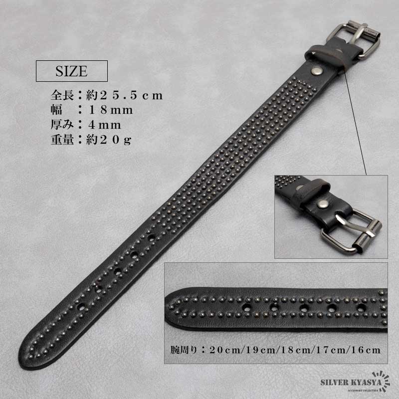 スタッズ レザーバングル パンク ハード レザーブレスレット メンズ 腕輪 牛 本革バングル リアルレザー