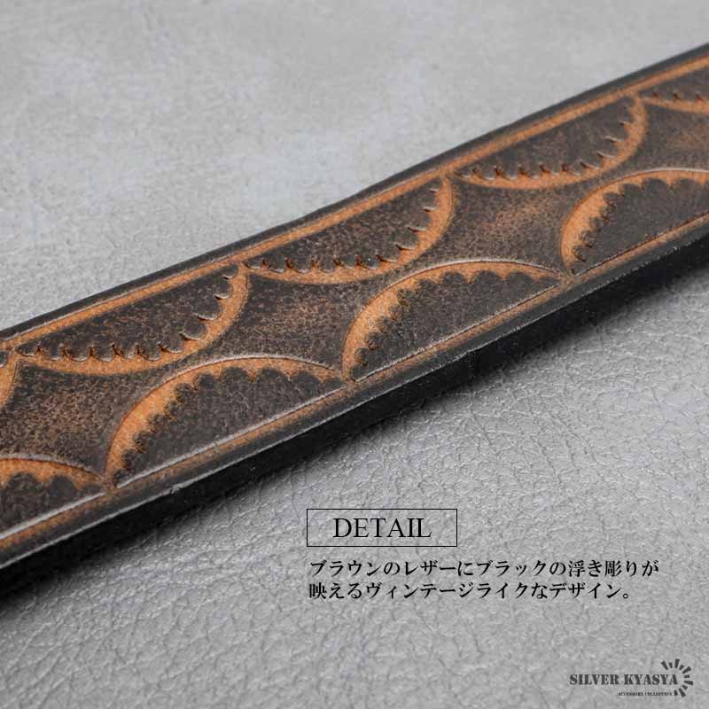 レザーバングル アメリカン 浮彫り レザーブレスレット 牛 本革 腕輪 メンズ パンク 本革バングル リアルレザー