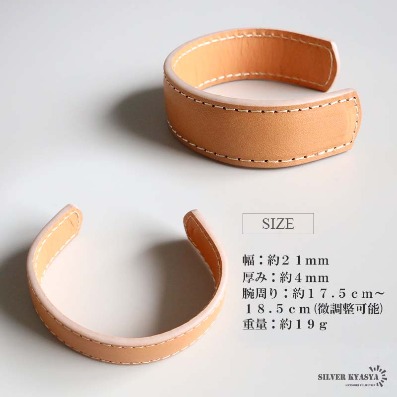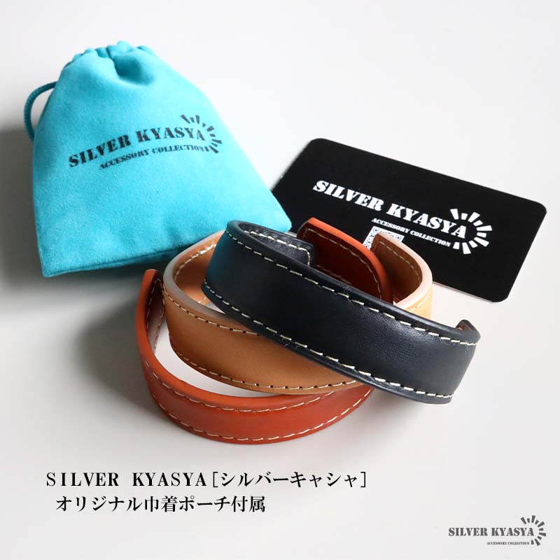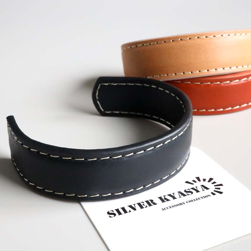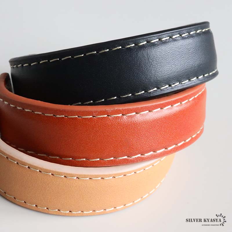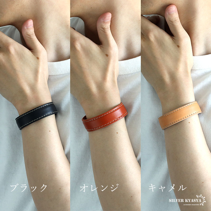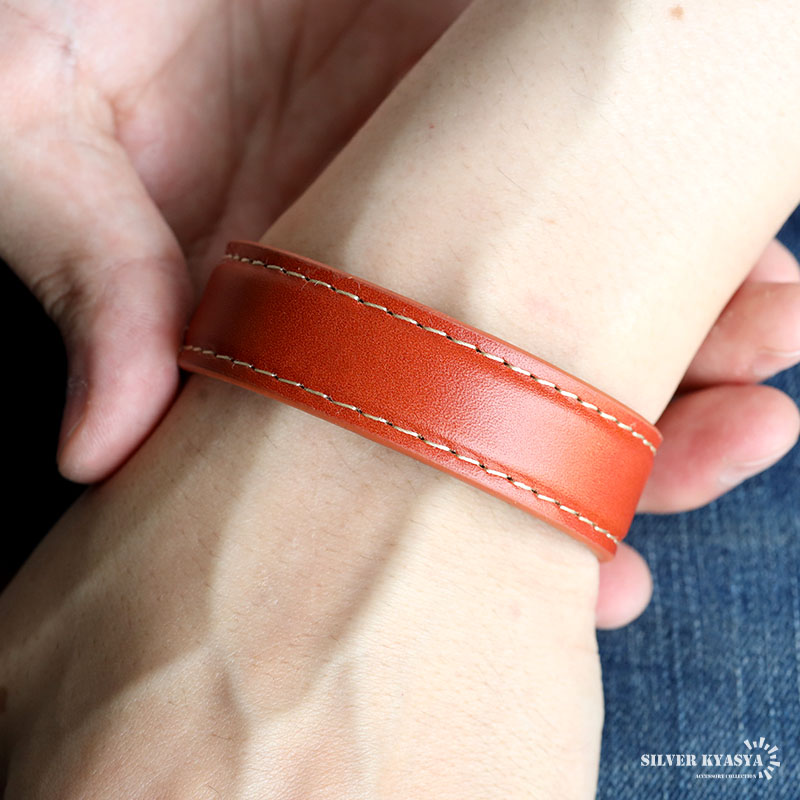 本革バングル レザーバングル 牛革バングル ブレスレット 腕輪 ブラック オレンジ キャメル シンプル ステッチ