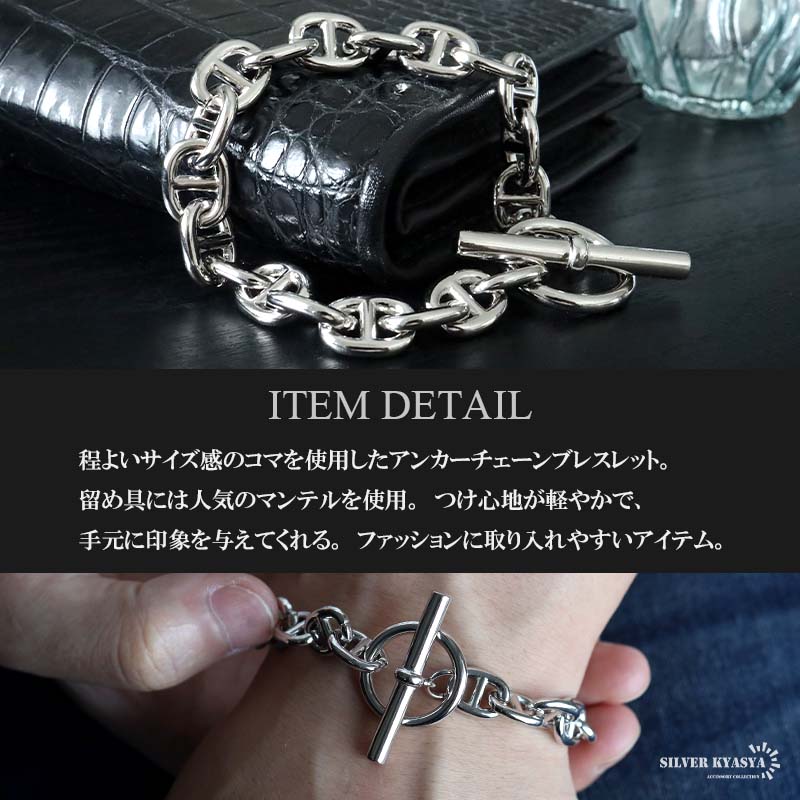 アンカーチェーンブレスレット マンテルブレスレット 太幅 ごつめ 大ぶり シルバー 錨 鎖 男女兼用