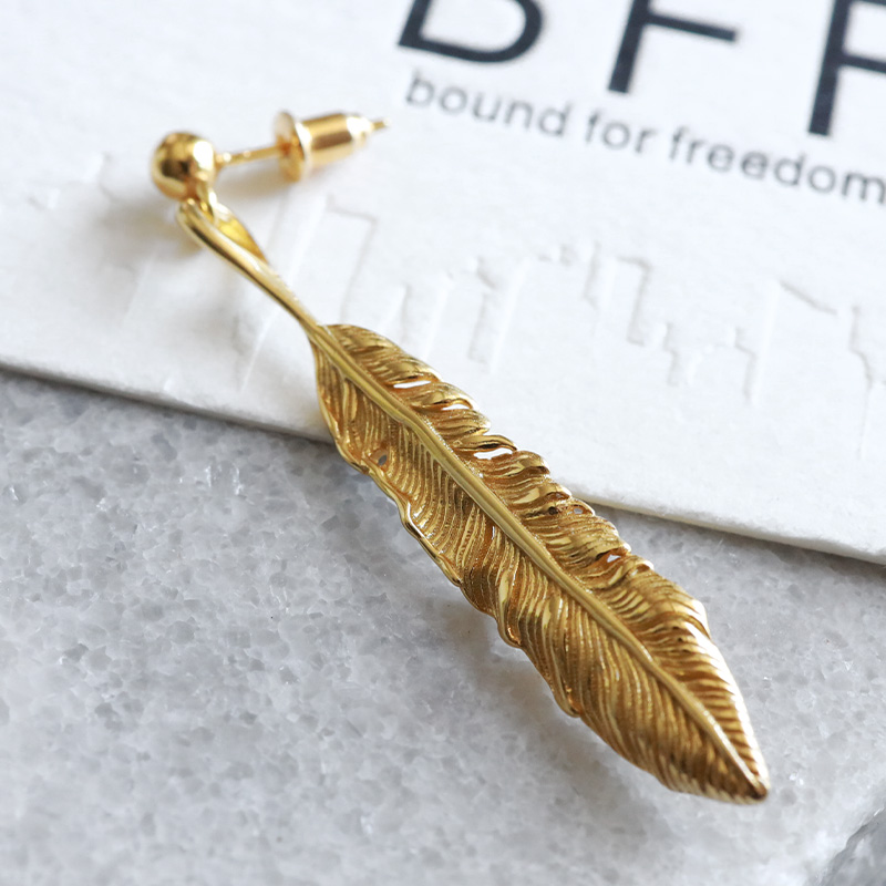 BFF ブランド フェザーピアス ゴールド 18K GP シルバー925 ドロップピアス 片耳用 金属アレルギー対応 専用BOX