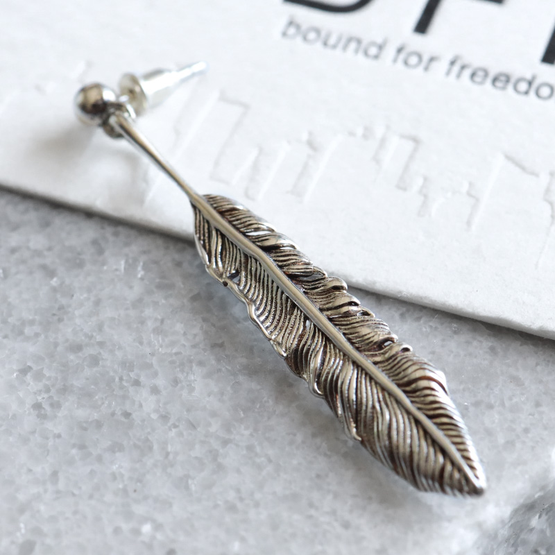 BFF ブランド フェザーピアス シルバー925 ドロップピアス 羽根 繊細 片耳用 金属アレルギー対応 専用BOX付属