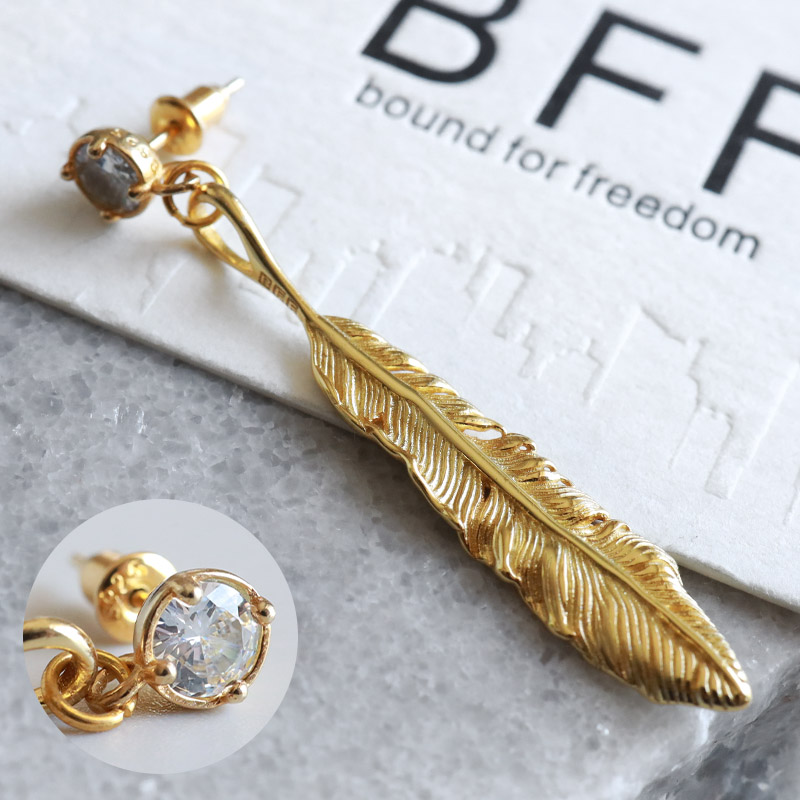 BFF フェザーピアス ゴールド 18K GP シルバー925 一粒ピアス ドロップピアス 片耳用 金属アレルギー対応 専用BOX