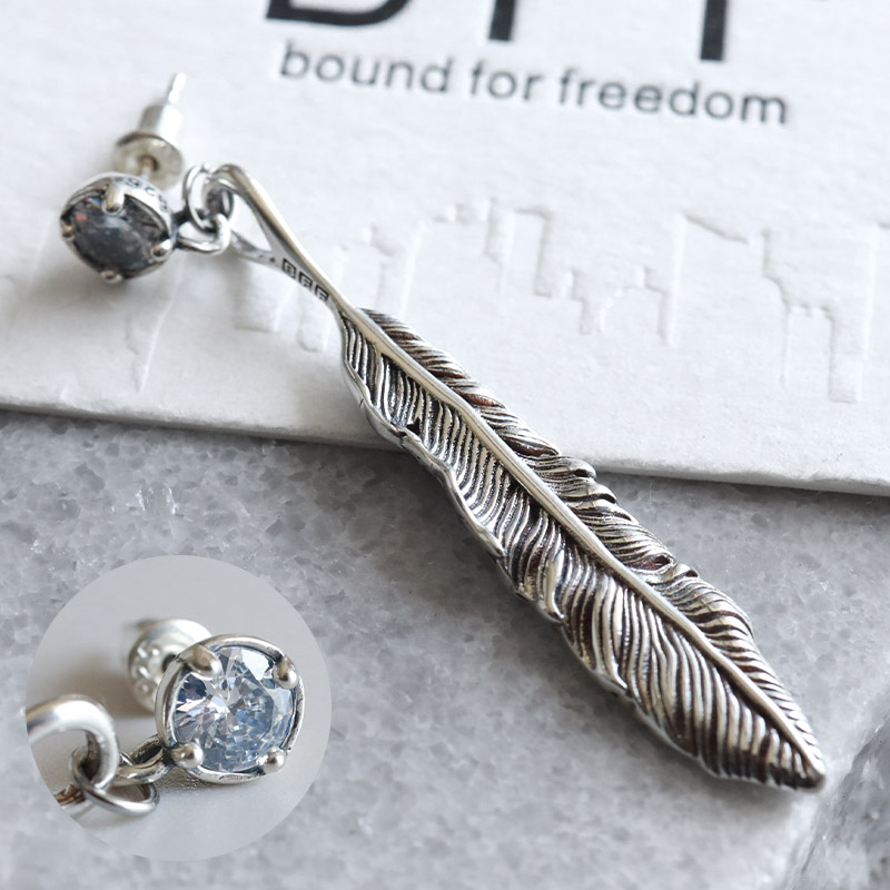 BFF フェザーピアス シルバー925 一粒ピアス ドロップピアス 片耳用 金属アレルギー対応 専用BOX