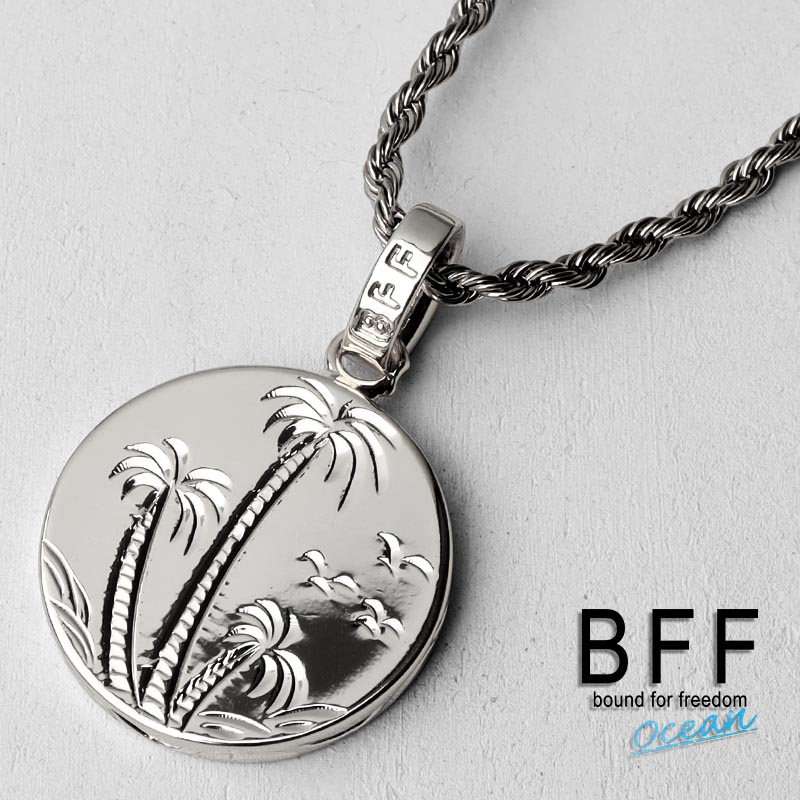 BFF ブランド コインネックレス シルバー 銀色 silver パームツリー ヤシの木 ペア ハワイアンジュエリー ロープチェーン 彫金 手彫り 専用BOX付属