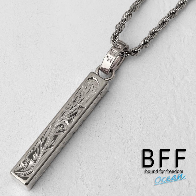 BFF ブランド スティックネックレス シルバー 銀色 silver Sサイズ プルメリア シンプル ハワイアンジュエリー ロープチェーン 彫金 手彫り 専用BOX付属