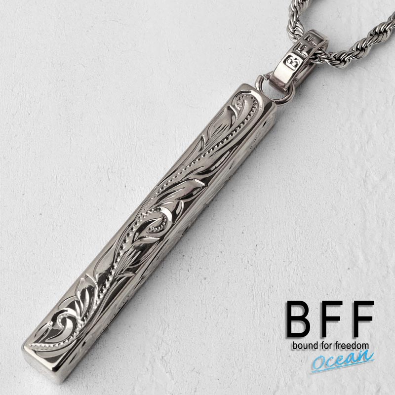 BFF ブランド スティックネックレス シルバー 銀色 silver Lサイズ プルメリア シンプル ハワイアンジュエリー ロープチェーン 彫金 手彫り 専用BOX付属