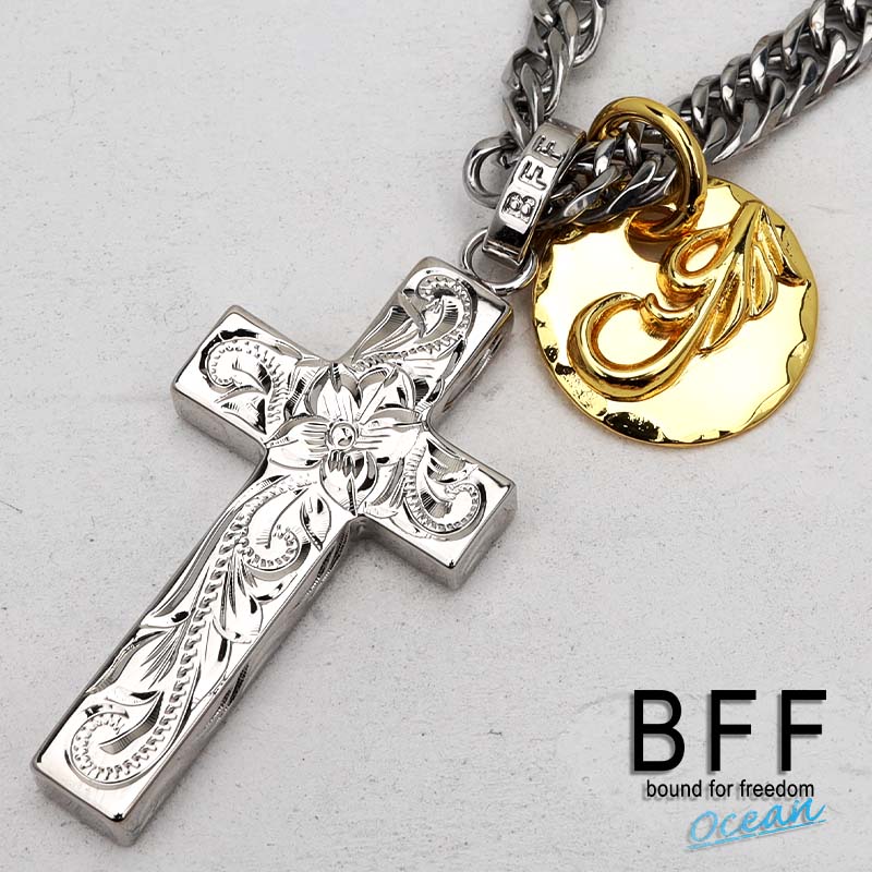 BFF ブランド クロスネックレス ダブル喜平 6面カット マイレ 唐草 メタル ステンレス シルバー 銀色 専用BOX付属