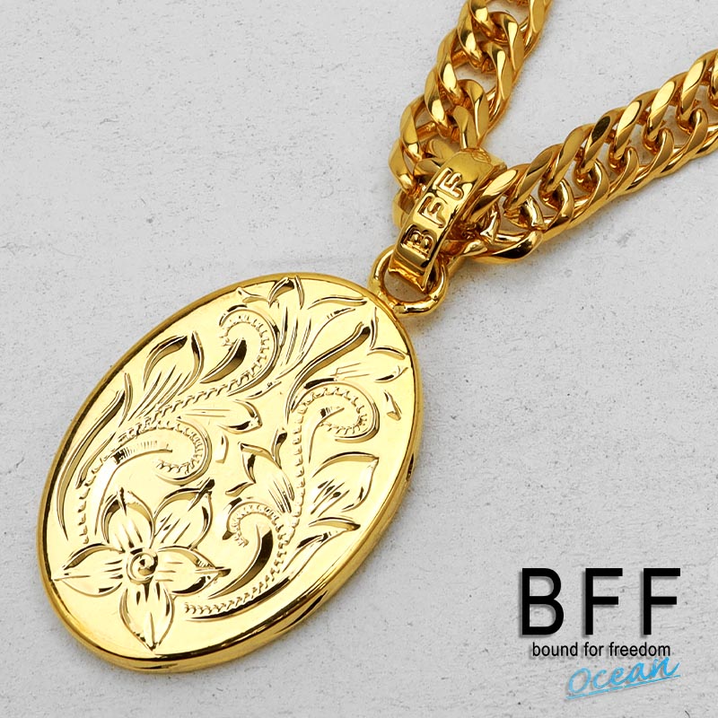 BFF ブランド オーバルネックレス ダブル喜平 6面カット マイレ ステンレス ゴールド 18K GP 金色 専用BOX付属