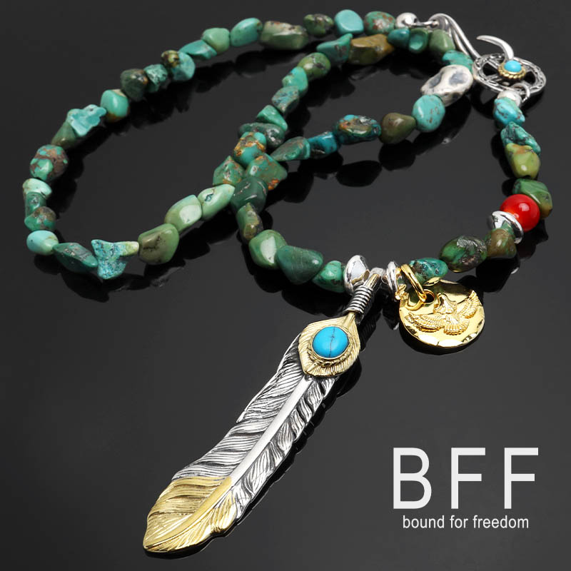 BFF ブランド フェザーネックレス ターコイズ 天然石 シルバー925 S925 銀 メンズ 金属アレルギー対応 専用BOX付属