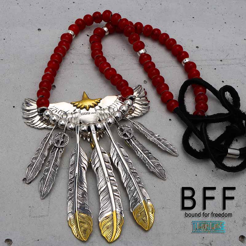 BFF ブランド イーグルネックレス シルバー925 銀 メンズ ホワイトハーツビーズ 革紐 金属アレルギー対応 専用BOX付属