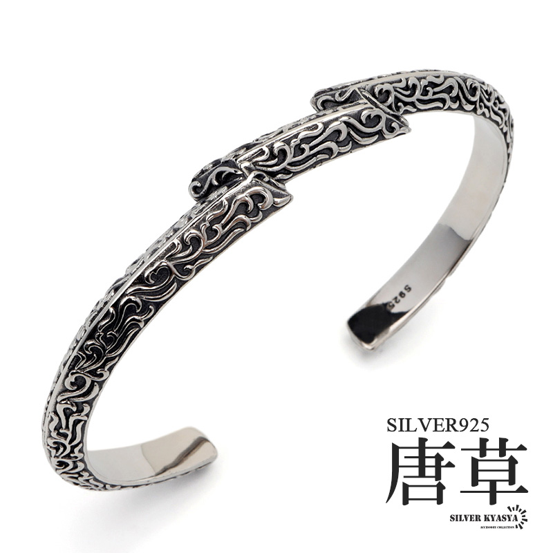 シルバー925 稲妻バングル 唐草 腕輪 男性 お洒落 アラベスク バングル シルバー925 silver ヴィンテージ