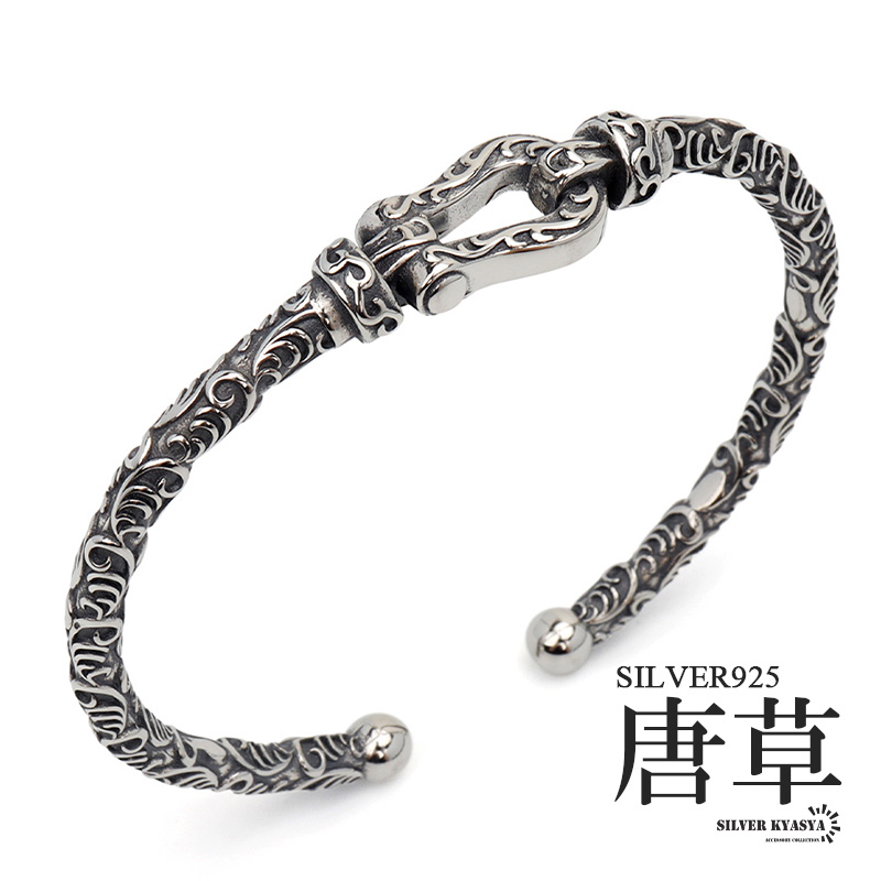 ホースシュー バングル 唐草 馬蹄 腕輪 お洒落 メンズ 細身 アラベスク シルバー925 silver