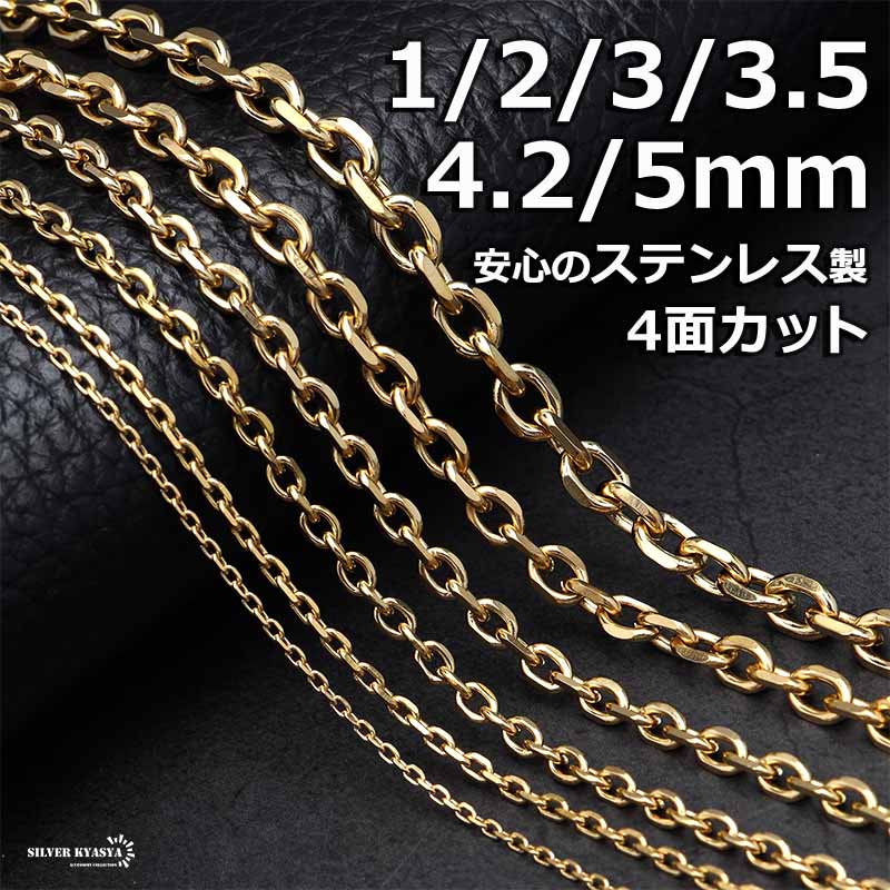 ステンレス あずきチェーンネックレス 4面カット ゴールド 金 18K GP 細めネックレス ゴールドネックレス 細身 幅6タイプ 金属アレルギー対応