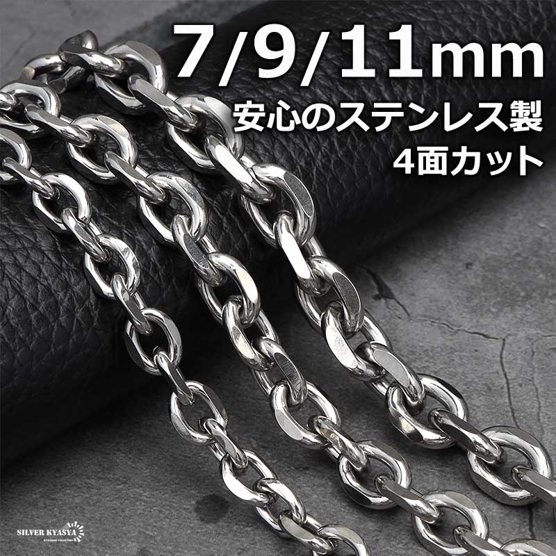 ステンレス あずきチェーンネックレス 4面カット シルバー 銀 ワイドネックレス 重量感 シルバーネックレス 太め 幅3タイプ 金属アレルギー対応