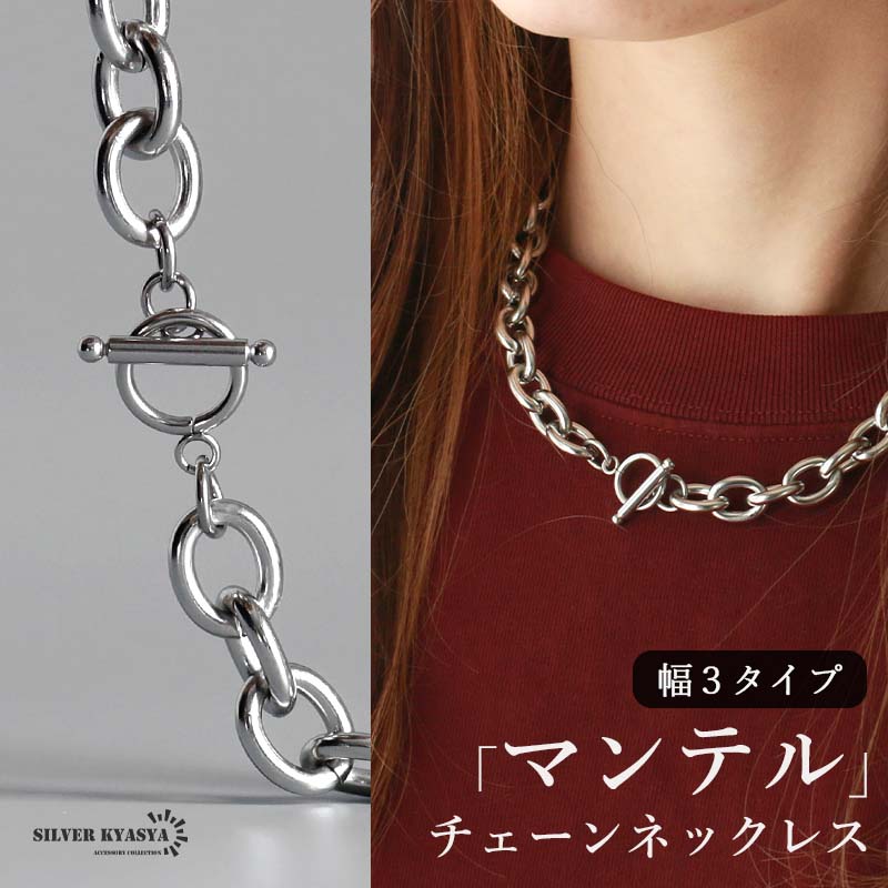 チェーンネックレス ステンレス マンテルネックレス レディース メンズ ユニセックス シルバー 幅3タイプ 長さ4タイプ 重厚感 シンプル 小豆 金アレ対応