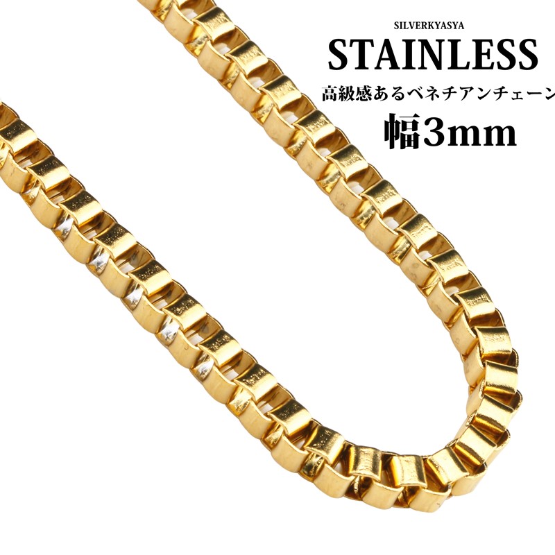 高級感あり ステンレス ベネチアンチェーン ゴールド 金 ステンレスチェーン ネックレス ボックスチェーン 45cm 50cm 60cm