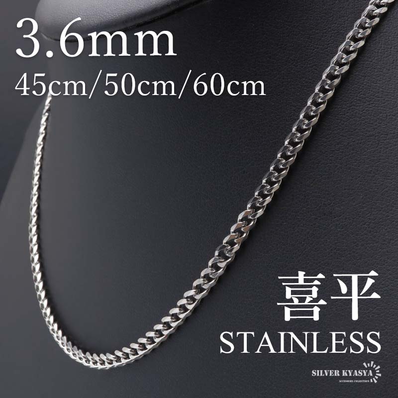 ステンレス 喜平ネックレス チェーンネックレス 幅3.6mm 長さ3サイズ シルバー 6面カット 細身 シンプル 重厚感 メンズ 男性 金アレ対応