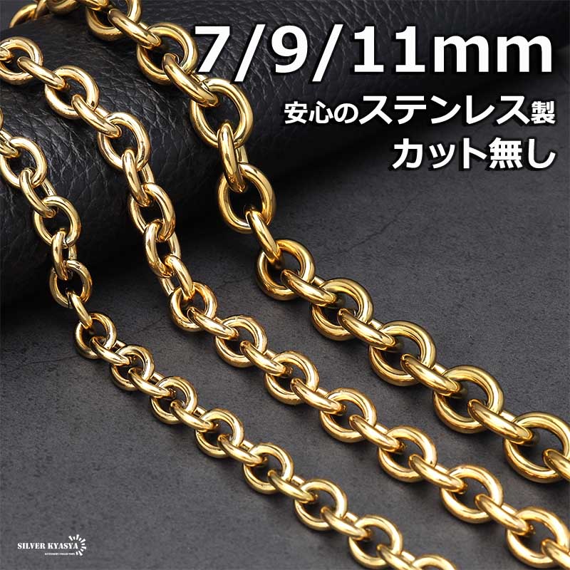 ステンレス あずきチェーンネックレス ゴールド 金 18K GP ワイドネックレス 重量感 ゴールドネックレス 太め 幅3タイプ 金属アレルギー対応