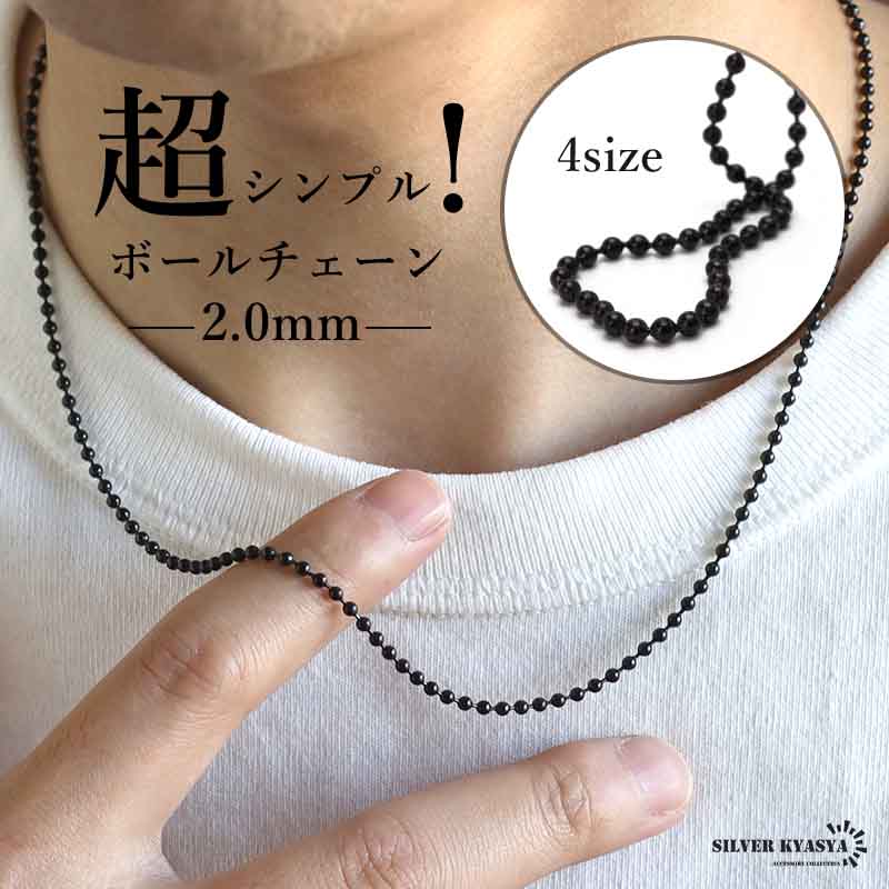 「真っ黒」なボールチェーンを採用した幅2mmのチェーンネックレス。シンプルなデザインでどんなファッションにも馴染みやすく、1つは持っておきたいマストアイテム。