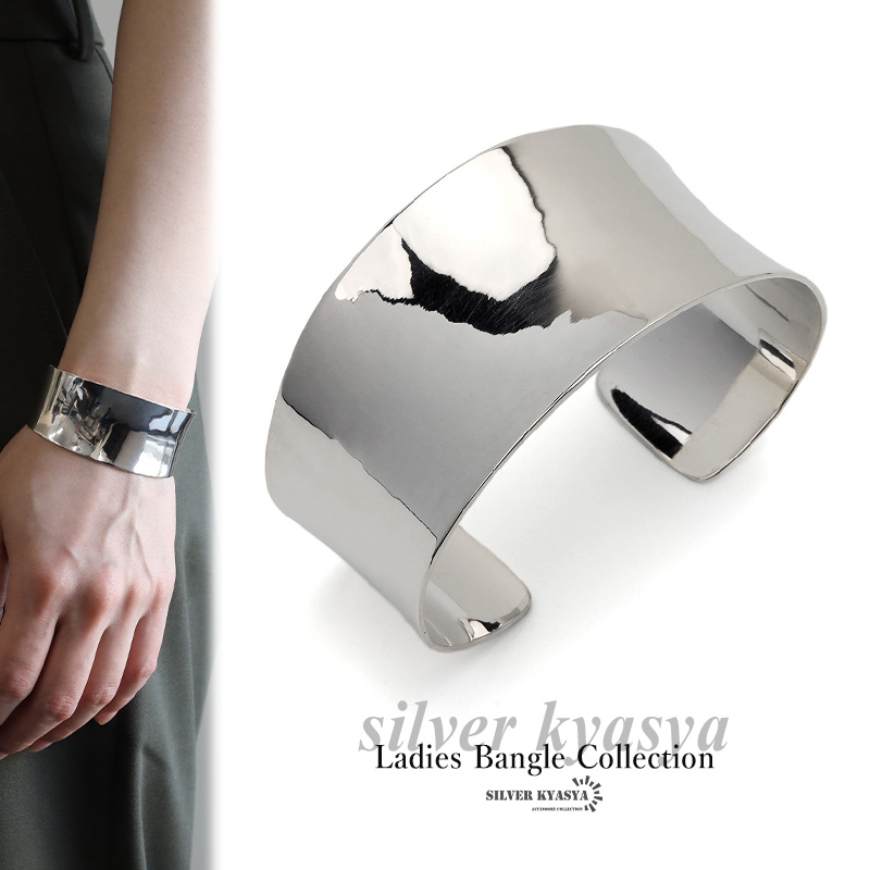 ワイドバングル シルバー925 レディース ブレスレット シルバーバングル 幅広 太目 ボーンカフ シンプル 大ぶり 人気