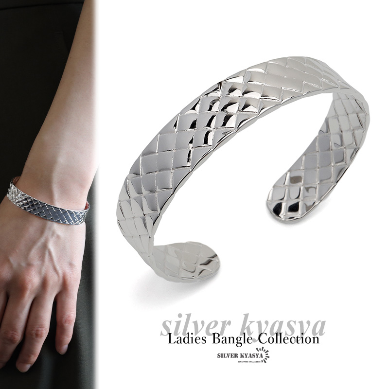 キルティングバングル シルバー925 ワイドバングル 太め 大ぶりバングル レディース シルバー 幅広 太目 ボーンカフ