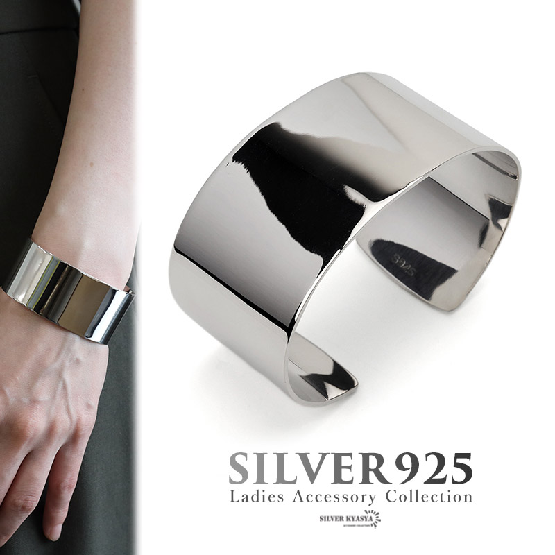 プレーンバングル ワイドバングル シルバー925 鏡面 つるつる シンプル 腕輪 ごつめ 太め 幅広 金属アレルギー対応