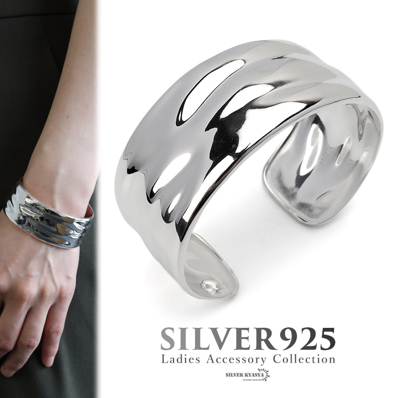 ラインバングル ワイドバングル シルバー925 ゆるやか なめらか シンプル 腕輪 ごつめ 太め 幅広 金属アレルギー対応