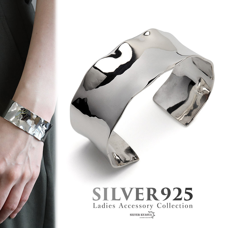 不規則槌目バングル ワイドバングル シルバー925 凸凹 シンプル 腕輪 ごつめ 太め 幅広 存在感 金属アレルギー対応