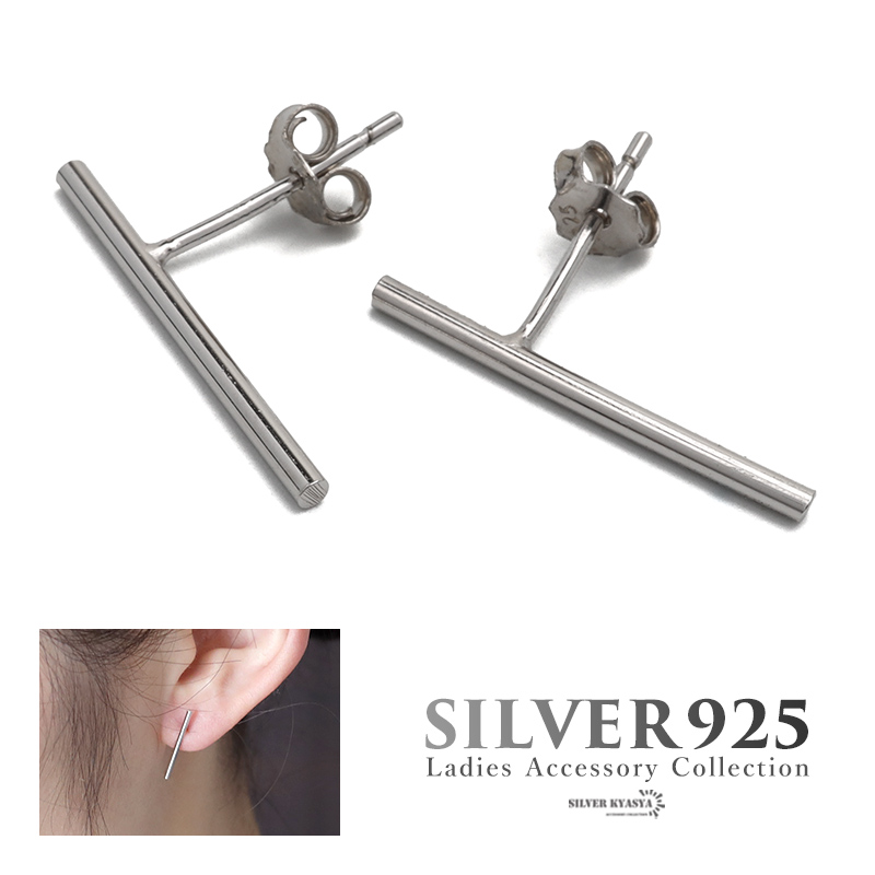 ピアス 金属アレルギー レディース シルバー925 スティックピアス 棒 ライン バー シルバー 銀 フェミニン 両耳用 2点