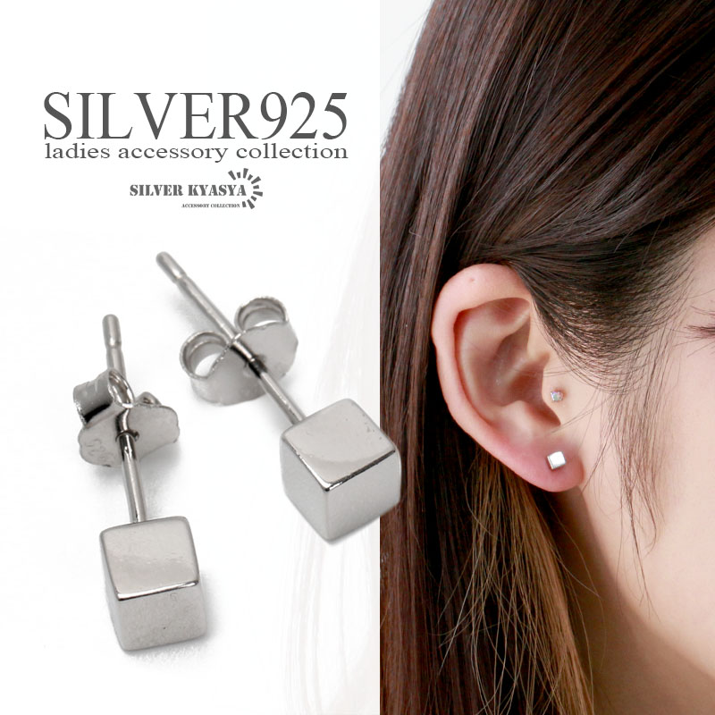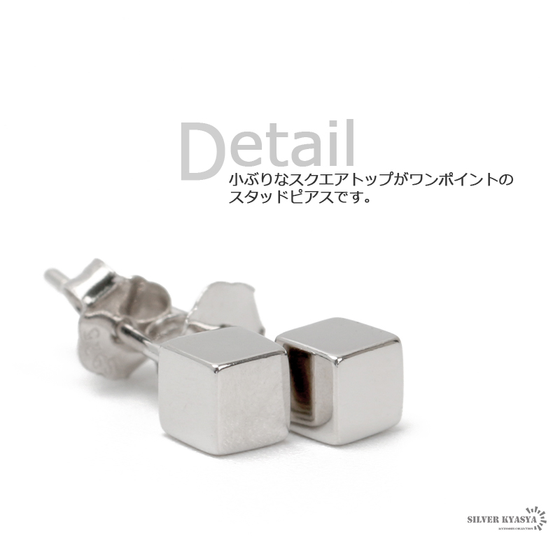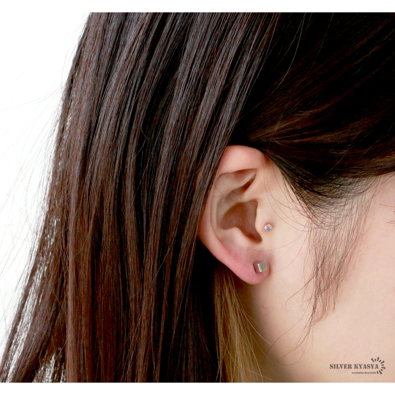 両耳用2点セット スクエア 四角 シルバー シルバー925 スタッドピアス 銀色 金属 アレルギーフリー 18G