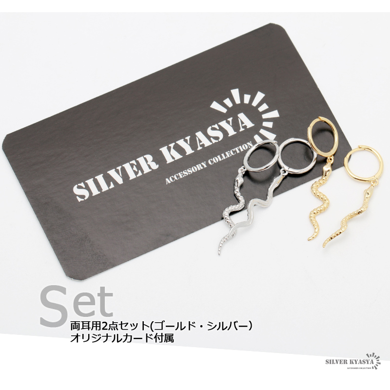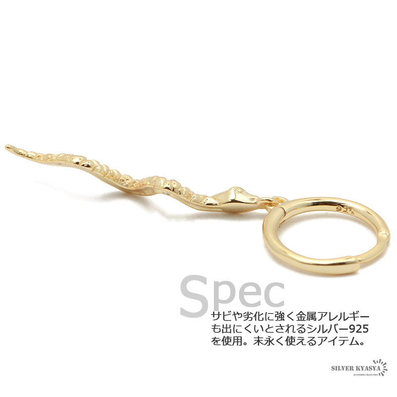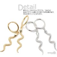 両耳用2点セット フープピアス 蛇 スネーク ドロップピアス シルバー925 シルバー ゴールド 金属 アレルギーフリー ジュエリー 18K GP 18G 爆買