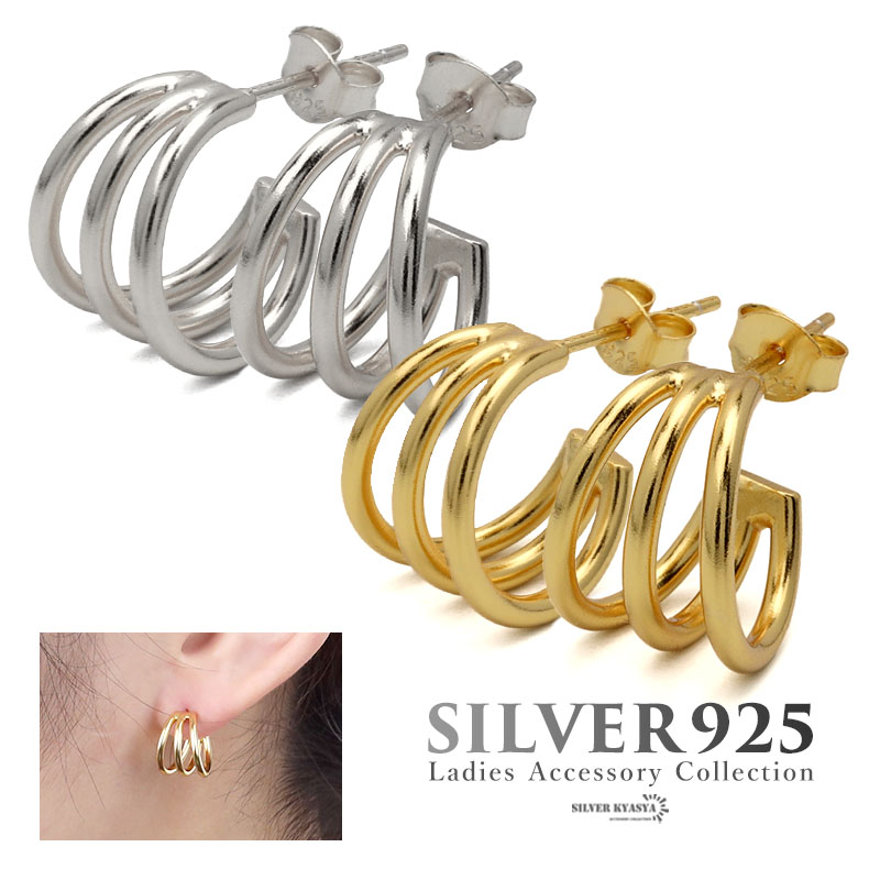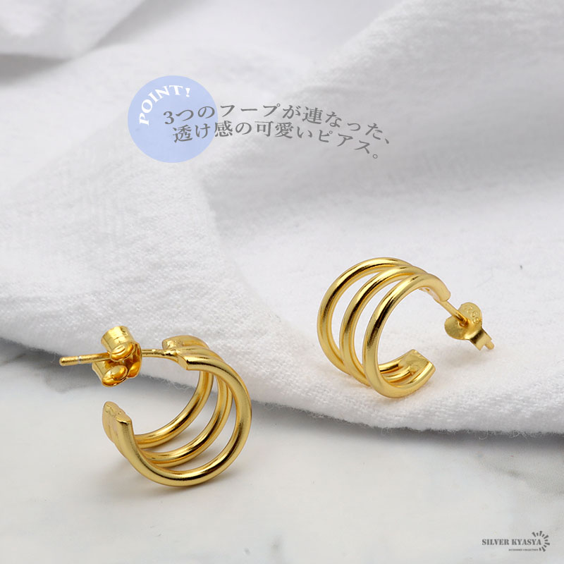 ピアス 金属アレルギー対応 シルバー925 S925 18KGP フープピアス 3連 C型 小ぶり ゴールド シルバー 金 銀 フェミニン シンプル 両耳用 2点セット
