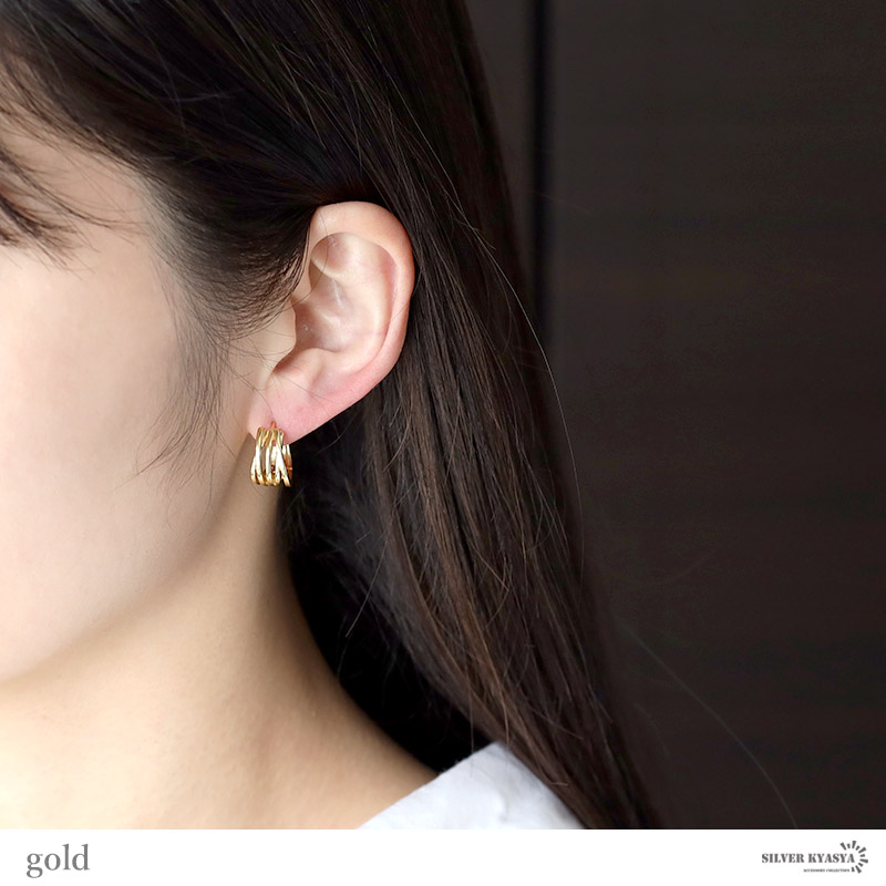 ピアス 金属アレルギー対応 レディース シルバー925 S925 18KGP フープピアス 3連 ライン ひねり ゴールド シルバー 金 銀 両耳用 2点セット