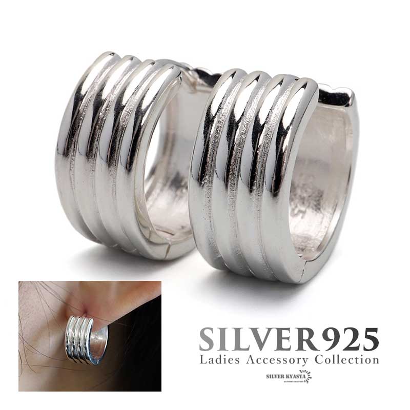 シルバー925 シンプルフープピアス 4ラインピアス 両耳 女子 大人 レディースピアス 太め 幅太ピアス 金属アレルギーフリー