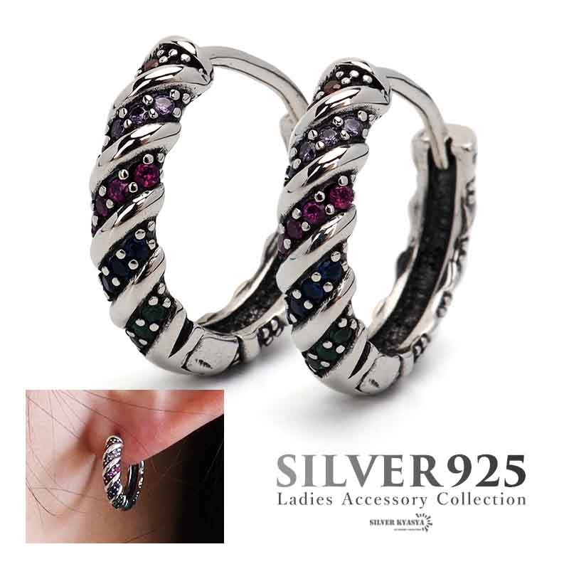 シルバー925 ツイストピアス カラフルストーンピアス ねじりピアス レディースピアス アクセント 金属アレルギーフリー