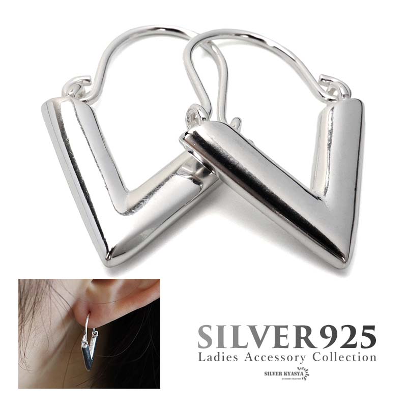 シルバー925 トライアングルピアス V フープピアス 三角 フープピアス シンプル 幾何学 両耳用 金属アレルギーフリー