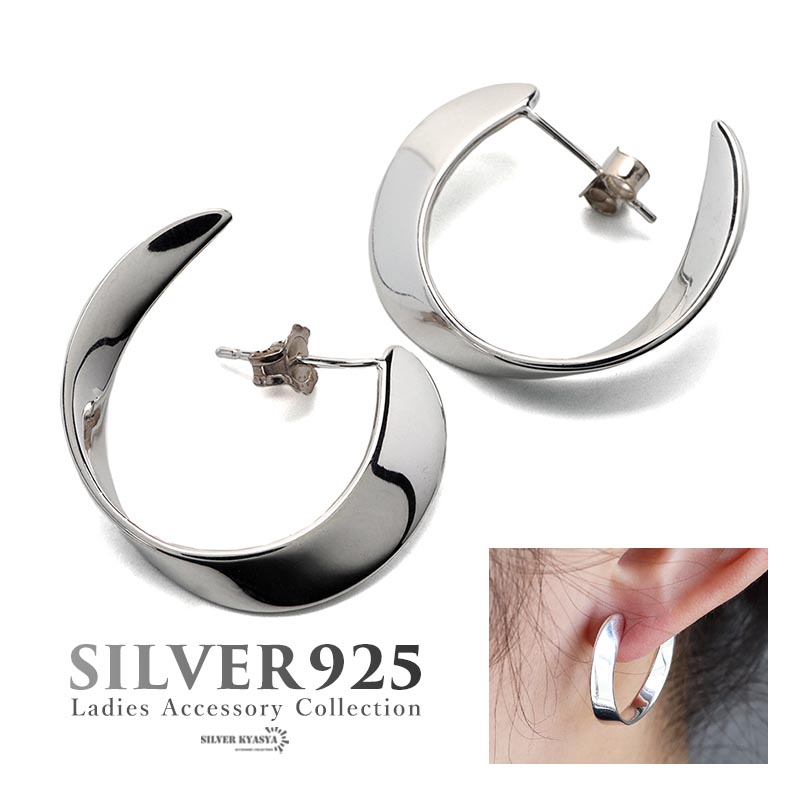 ひねりサークルピアス シルバー925 フープピアス スタッドピアス 両耳用 2点 ねじり サークル 金属アレルギーフリー