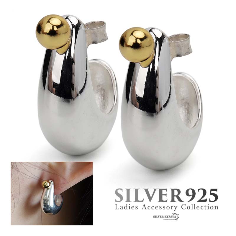 雫ピアス シルバー925 フープピアス スタッドピアス 両耳用 2点 ドロップ 涙 雫 しずく 金属アレルギーフリー