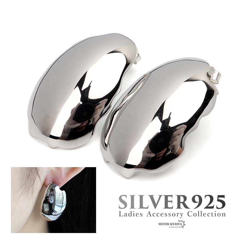 鏡面ワイドピアス シルバー925 スタッドピアス 両耳用 2点セット ラウンド 幾何学 鏡 シルバー 金属アレルギーフリー