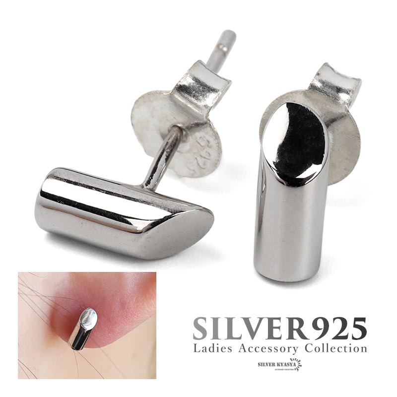 ミニマムピアス 斜めカット シルバー925 スタッドピアス 両耳用 2点 円柱 小さめ シルバー 小ぶり 金属アレルギーフリー
